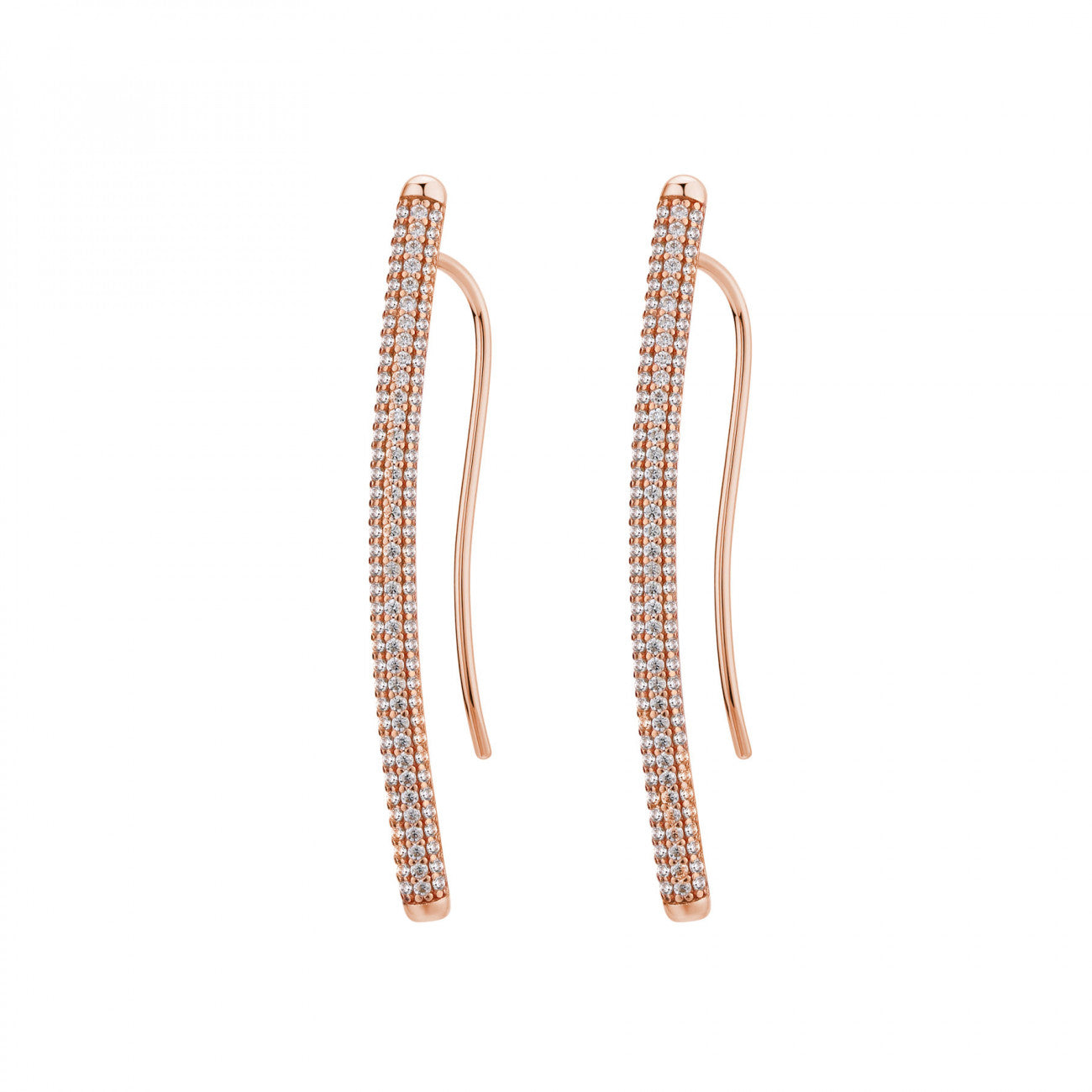 Pendientes largos de plata 925 ‰, baño de oro rosa, 296 circonitas blancas.
